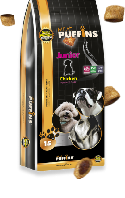 Masové Puffíny představují novou, moderní, vysoce hodnotnou superpremiovou stravu pro psy. Jedinečné provedení ve formě plněných masových "puffín" zachovává vysokou nutriční úroveň čerstvých přírodních surovin, křupavá a křehká sturktura má velký význam z hlediska chutnosti a stravitelnosti.